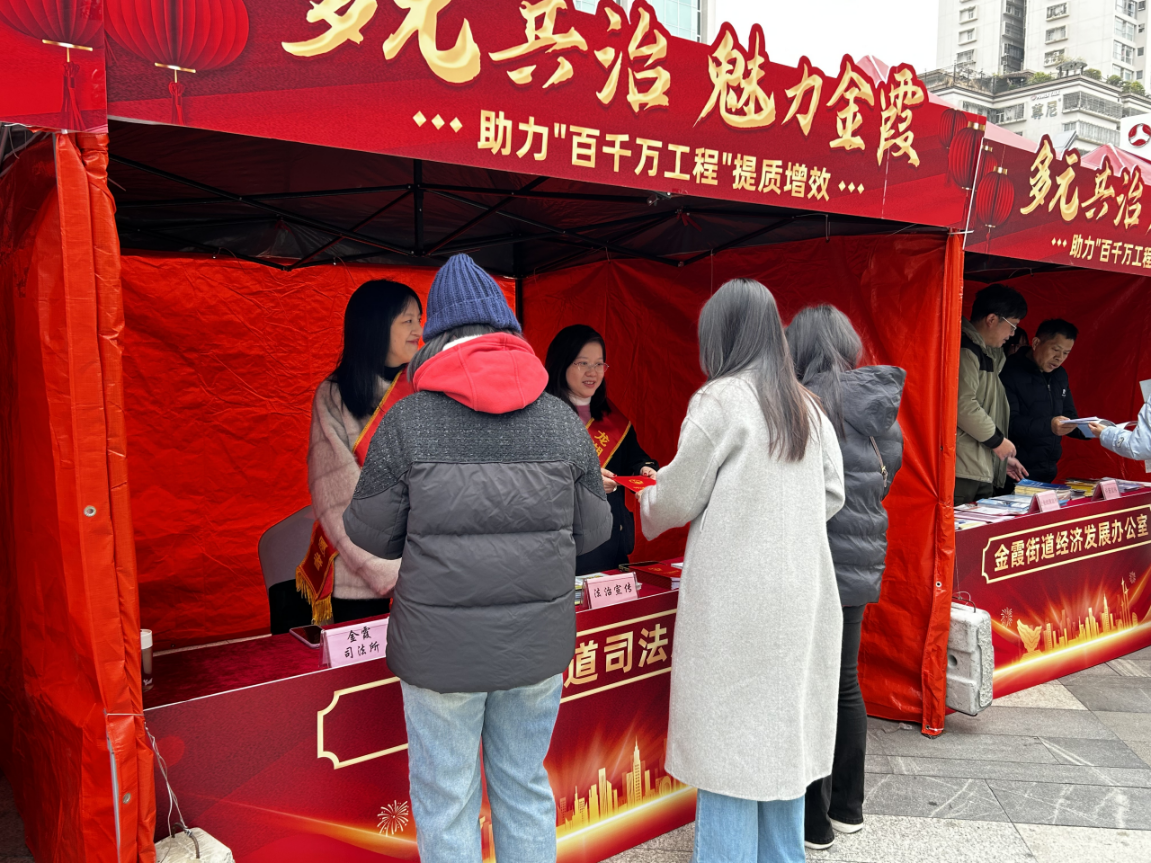 為深入學習貫徹習近平法治思想,切實推動《中華人民共和國法治宣傳教育法》落地生根,進一步提升轄區群眾法治素養和法治意識,營造“辦事依法、遇事找法、解決問題用法、化解矛盾靠法”的濃厚氛圍,1月23日,金霞街道在合勝廣場開展“臺胞助力百千萬同心同行啟新程”百千萬三年成果展暨2026年迎新春活動,龍湖區司法局金霞司法所依托活動現場人流密集的優勢,開展《中華人民共和國法治宣傳教育法》專題法治宣傳活動,將法律知識精準送到群眾身邊。