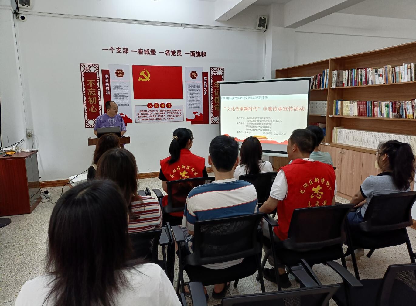 活動現場,主講人圍繞英歌舞的起源與發展、文化內涵、表演形式等相關知識向大家介紹了英歌舞這一國家級非物質文化遺產項目。社區居民們聚精會神地聆聽,細致學習了解英歌舞這一獨具潮汕特色的民俗文化活動,通過觀看英歌舞表演視頻更直觀地體驗到英歌舞這種節奏強烈的非遺大型集體舞的魅力,切實感受非遺文化蘊含的獨特內涵和精神價值。