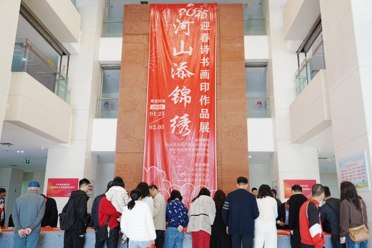 為全面展現(xiàn)文藝賦能“百千萬工程”的工作成果,弘揚(yáng)中華優(yōu)秀傳統(tǒng)文化,滿足市民群眾的精神文化需求,2025年1月25日上午,由新津街道組織開展的“河山添錦繡·2025迎春詩書畫印作品展”暨“我在新時(shí)代文明實(shí)踐中心過大年”系列活動(dòng),在汕頭市圖書館盛大啟幕。本次書畫印作品展由市文廣旅體局、市文聯(lián)、汕頭技師學(xué)院主辦,新津街道辦事處聯(lián)合市書畫研究會(huì)、市圖書館等多個(gè)主體共同承辦,積極探索全新活動(dòng)模式,為傳統(tǒng)文化創(chuàng)新發(fā)展注入了新活力。