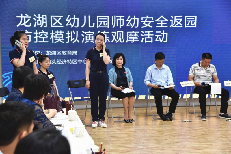 按照《廣東省教育廳關(guān)于開展全省學校學生返校疫情防控模擬演練的通知》要求,龍湖區(qū)先后于4月16日和26日組織開展了多場次、多層面的疫情防控模擬演練,切實提高全區(qū)中小學、中職學校師生返校疫情防控和遭遇突發(fā)狀況的應急處置能力,保障師生安全。當天上午舉行的幼兒園師幼返園防控模擬演練活動以“現(xiàn)場演練+桌面推演”形式進行呈現(xiàn)。