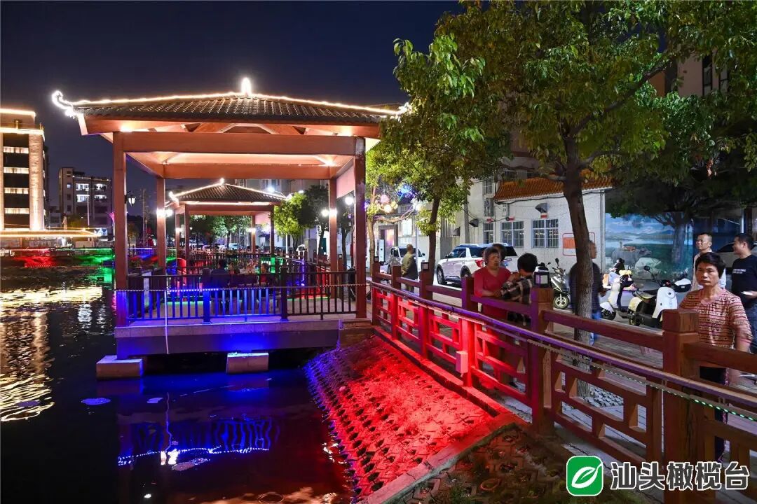 這里見證了南社村的點滴蛻變——新修的村道平坦整潔,池塘周邊加裝的景觀燈帶炫彩奪目,文化公園里還增設了休閑長椅。周末來臨,游客們在這里既能感受“水與光”的浪漫,也能體驗地道的農家生活:嘗一碗剛出鍋的粿條湯,喝一杯清甜的茅根水,聽村民聊聊村里的新鮮事。