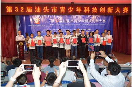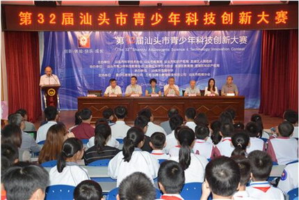 2016年11月20日,由汕頭市科協(xié)、汕頭市教育局、汕頭市知識(shí)產(chǎn)權(quán)局和龍湖區(qū)人民政府主辦的第32屆汕頭市青少年科技創(chuàng)新大賽在蓬鷗中學(xué)隆重舉行,這是汕頭市創(chuàng)新大賽舉辦以來(lái)的第一次走進(jìn)校園。市科協(xié)副主席洪祥武主持了開(kāi)幕式。大賽開(kāi)幕式上,市科協(xié)黨組書記、主席洪建芬,市教育局副局長(zhǎng)王濺波,龍湖區(qū)委常委孫健文,蓬鷗中學(xué)校長(zhǎng)楊力群分別致辭。隨后,臺(tái)上領(lǐng)導(dǎo)為2015—2016年在省市創(chuàng)新大賽獲得優(yōu)秀成績(jī)的個(gè)人和集體進(jìn)行了頒獎(jiǎng)。