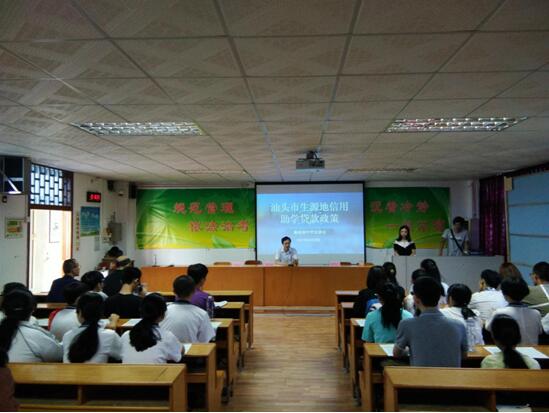 全面開展生源地信用助學貸款是我省2017年十件民生實事之一。龍湖區教育局高度重視,設立了3個助學貸款政策宣講點,20日上午同時在翠英中學、謝易初中學、新溪第一中學組織舉辦助學貸款宣傳活動。區教育局郭長川副局長、區教育局相關股室負責人、有關學校領導,及300多名學生、家長參加了現場宣傳活動。工作人員就學校信用助學貸款宣傳發動工作進行解釋說明,組織全體與會人員觀看《2017年助學貸款讓你圓夢》和《2017年生源地助學貸款和辦理流程宣傳動漫》,并就貸款申請、還款須知、系統操作等問題以PPT形式進行了深入淺出的講解,現場釋疑,使學生和家長對政策有更透徹的認識和了解。