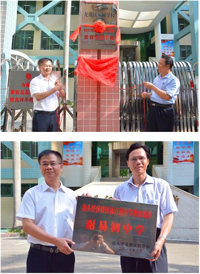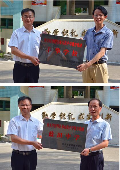 隨后,楊育群局長和林百欣中學(xué)教育集團沈初生總校長共同為汕頭經(jīng)濟特區(qū)林百欣中學(xué)教育集團世貿(mào)實驗學(xué)校揭牌,楊育群局長為集團各成員學(xué)校一一授牌,林百欣中學(xué)教育集團正式開啟實質(zhì)性運作模式。