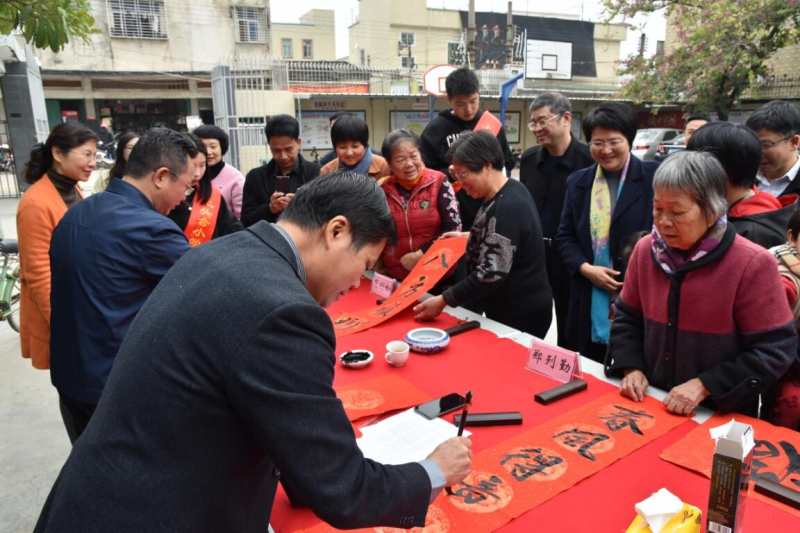 春節(jié)將至,為弘揚社會主義核心價值觀和中華優(yōu)秀傳統(tǒng)文化,做好精準扶貧有關工作,1月16日上午,區(qū)教育局黨委組織區(qū)內教育系統(tǒng)四名書法家,深入到局掛鉤幫扶的新溪鎮(zhèn)上頭合村,開展“迎新春送春聯(lián)”及精準扶貧活動。
