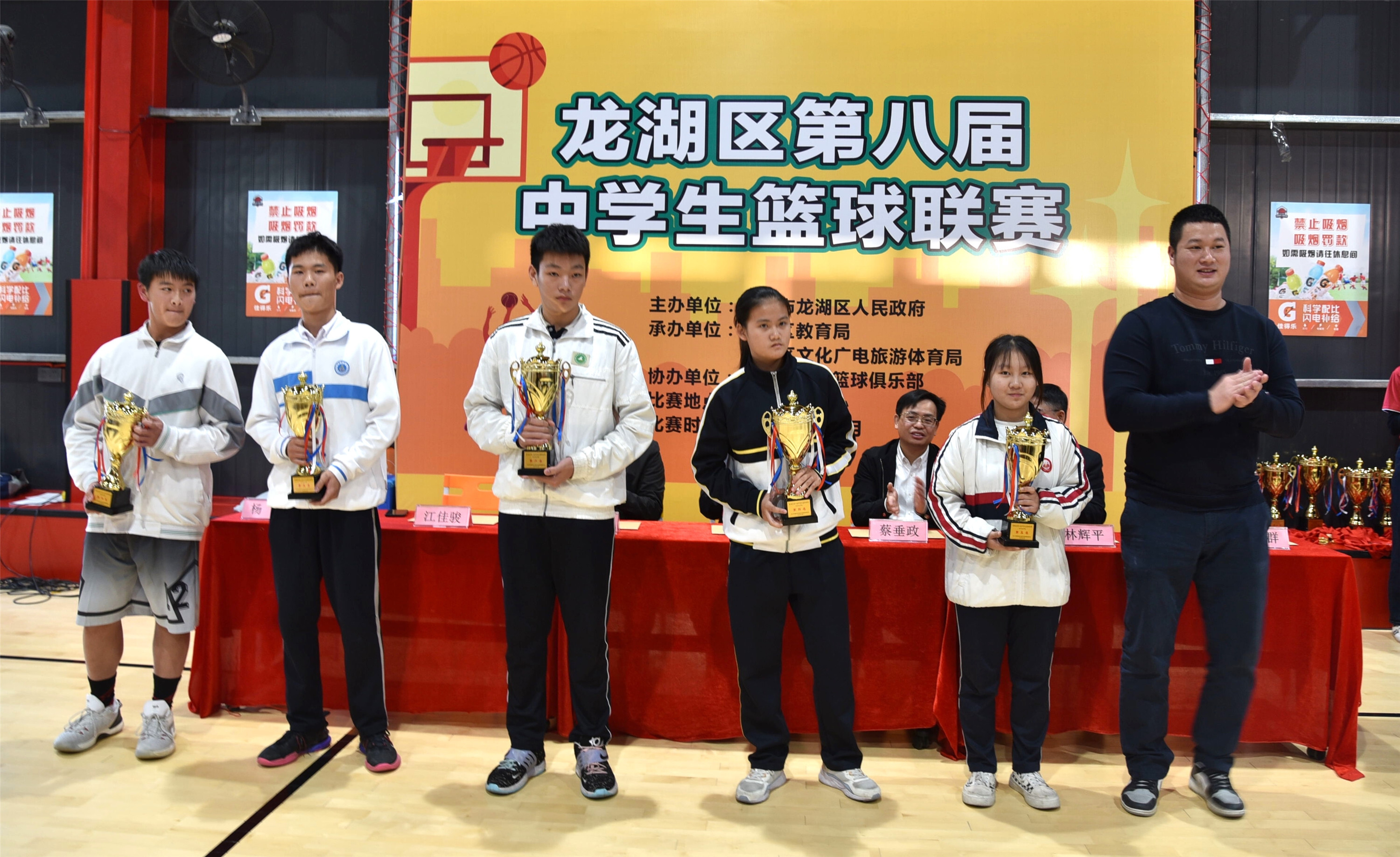 本屆賽事男子組有13支隊(duì)伍,女子組5支隊(duì)伍,男女共計(jì)215名運(yùn)動員參加,經(jīng)預(yù)賽、決賽兩個階段角逐,決出勝負(fù)。比賽中,運(yùn)動員們個個英姿勃發(fā)、奮勇爭先,他們在賽場上嚴(yán)密防守,密切配合,運(yùn)球、傳球、搶籃……最終,本屆籃球賽,謝易初中學(xué)、新溪中學(xué)、藍(lán)田中學(xué)分獲男子組冠、亞、季軍,外砂華僑中學(xué)、豐華學(xué)校、世貿(mào)實(shí)驗(yàn)學(xué)校列男子組第四至第六名。女子組方面,下蓬中學(xué)勇奪冠軍,碧華實(shí)驗(yàn)學(xué)校獲得亞軍,謝易初中學(xué)第三名。廣二師龍湖附中等7支球隊(duì)獲得體育道德風(fēng)尚獎。