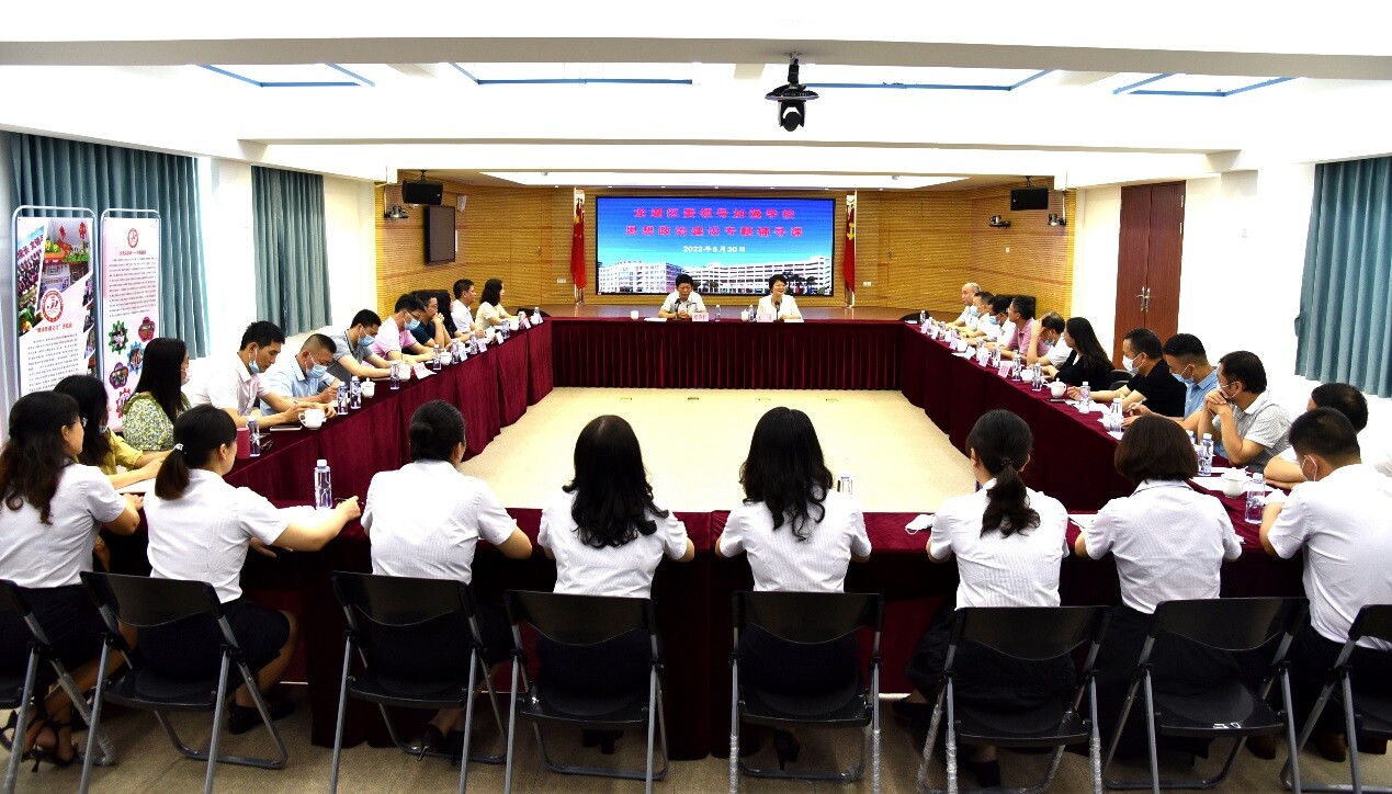 5月30日上午,區委常委、常務副區長鄭詩桂到金濤小學教育集團,為該集團校長和教師代表作加強學校思想政治課建設專題輔導。區教育局主要領導、金濤小學教育集團思政課輔導員及各成員學校校長、分管德育副校長及部分教師代表參加了活動。