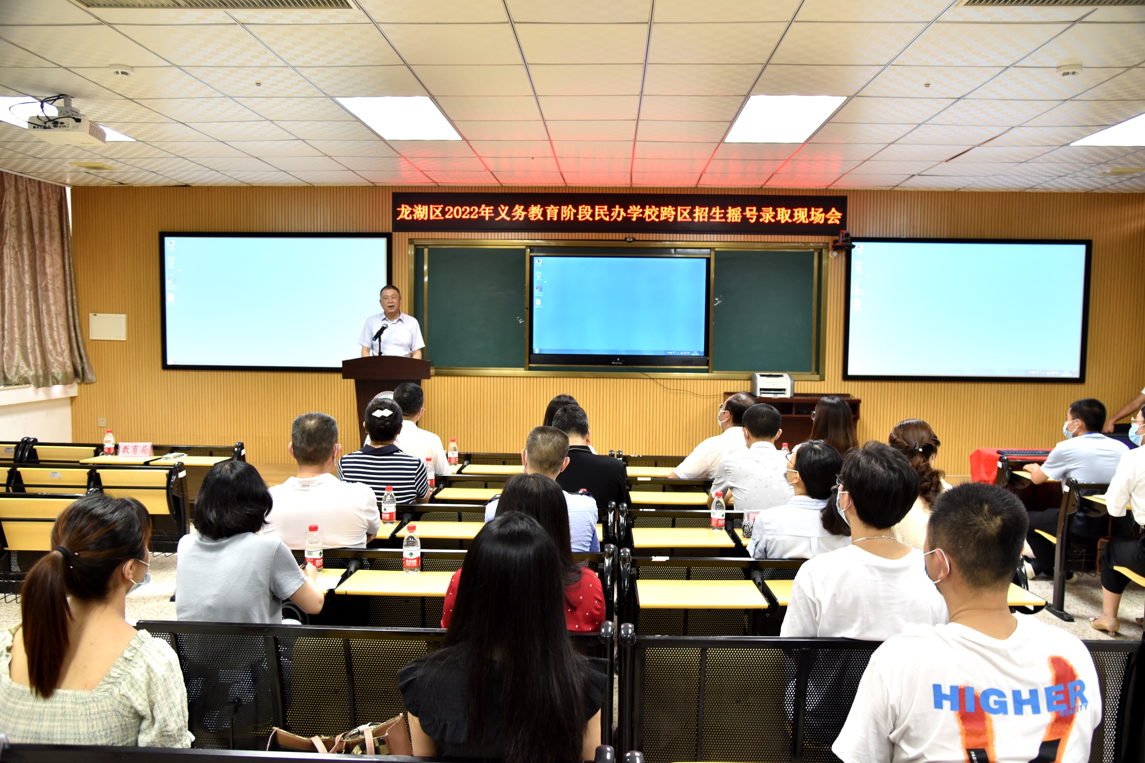 8月2日上午,龍湖區招生工作領導小組在翠英中學舉行2022年義務教育階段民辦學??鐓^招生搖號現場會,對報名人數超過跨區招生計劃數的龍湖區碧華實驗學校采用電腦隨機搖號方式進行跨區招生錄取。