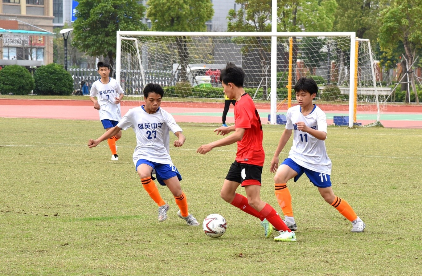 首場比賽開始,翠英中學初中男子隊對陣新溪中學隊。綠茵場上,兩支隊伍展開激烈角逐,運動健兒們奮力奔跑,默契傳球、搶斷、射門,比賽緊張激烈、精彩不斷。最終,新溪中學隊將1:0的優勢保持到終場,取得了首場勝利。