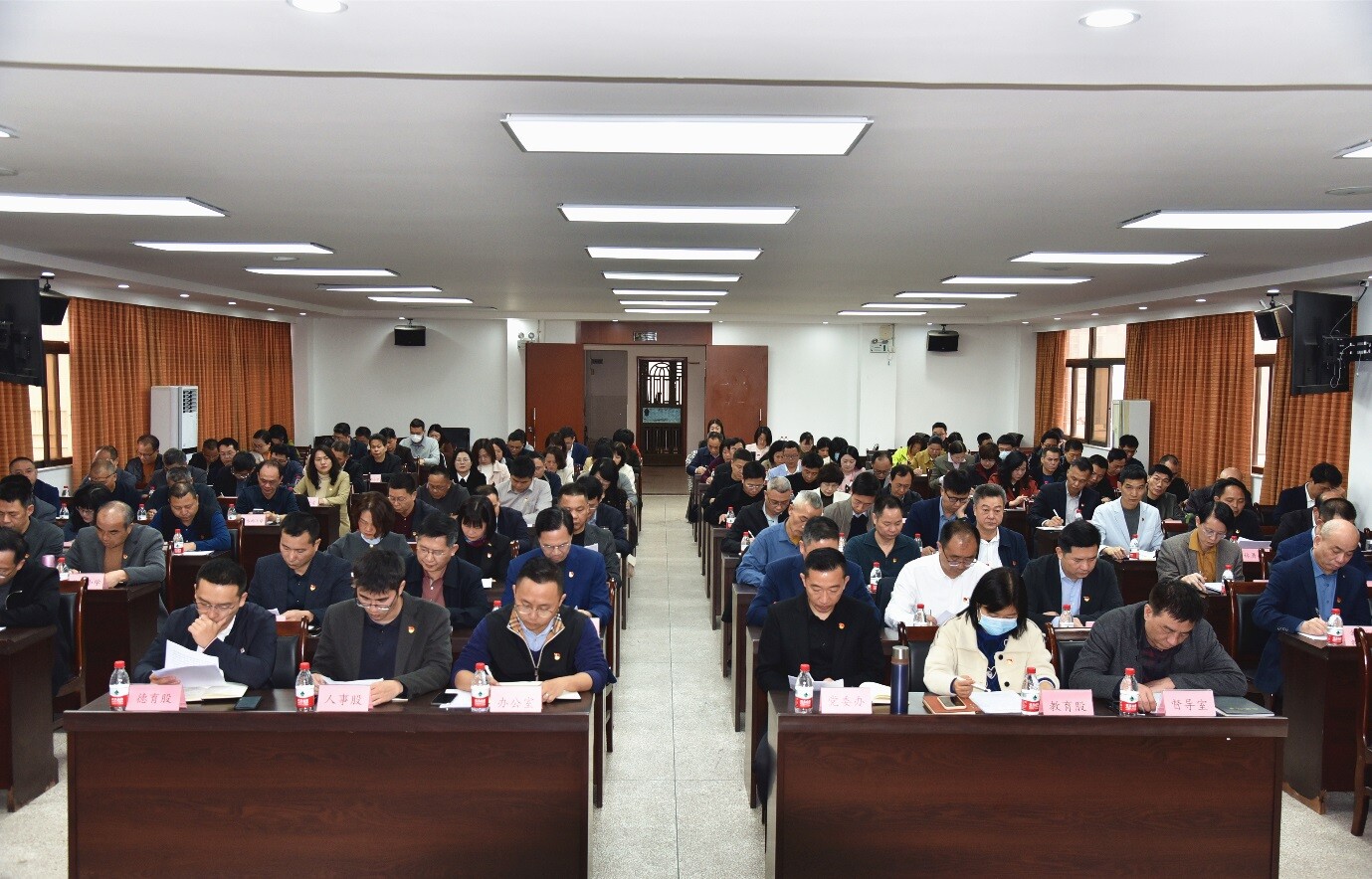 區教育局班子成員、局各股室負責人,區教師發展中心班子成員,各中小學、幼兒園黨組織書記及各中小學校長、公辦幼兒園園長參加會議。