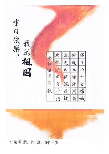 立報國之志,踐愛國之行。龍湖學子用筆墨描繪祖國秀麗山河,用書畫謳歌新時代新風尚,用歌聲深情表白親愛的祖國,通過一系列豐富多彩的活動,為祖國獻上“藝”份份最真誠的禮物。