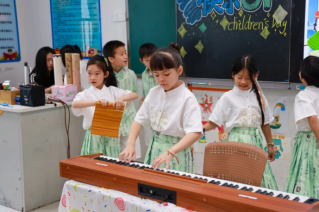 第一次走進(jìn)校園時,濃郁的美育氣息撲面而來。教學(xué)樓的走廊被打造成流動的藝術(shù)長廊:低年級童趣盎然的手工作品、高年級滿是回憶的畢業(yè)畫冊、利用廢舊物品打造的春日花園與孩子們精心培育的花草交相輝映。課間時分,悠揚的琴聲時常在校園里回蕩,讓人真切感受到"潤物細(xì)無聲"的美育力量。