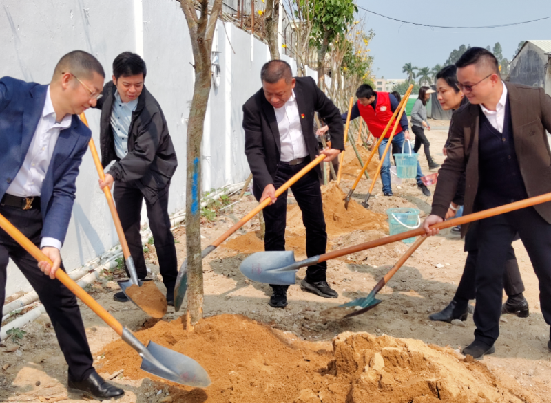 活動伊始,出席活動的領導和嘉賓共同揮鍬鏟土,種下33棵黃花風鈴木和秋楓樹,著力打造“龍湖·下蔡僑心林”,寄盼“僑心林”綠樹成蔭,為下蔡村帶來盎然生機,為綠美龍湖生態(tài)建設貢獻僑界力量。植樹結束后,王浩然為“僑心林”揭牌,隨后,區(qū)僑聯(lián)主要領導向捐贈植樹資金的僑企和僑界愛心人士代表頒發(fā)捐贈證書,感謝他們?yōu)橹埡^(qū)“百千萬工程”和綠美龍湖生態(tài)建設貢獻僑力。