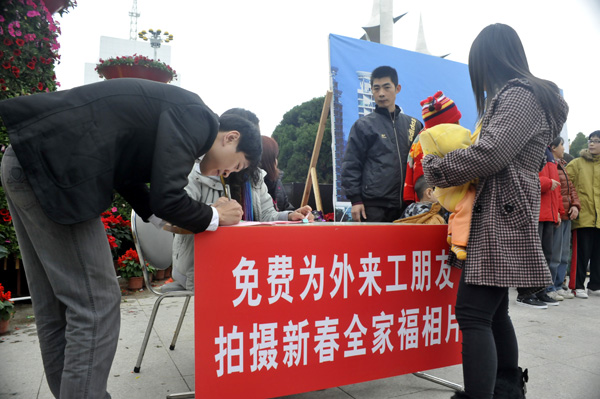 為使活動更具生命力,更受農民工朋友的喜愛,今年,主辦單位在保留大部分游藝項目的同時,增加新項目4個共8個攤位,第一次嘗試雙人競技的游戲;更值得一提的是“新春全家福”項目,專門為農民工拍攝全家福相片,鏡頭前,農民工朋友攜老帶幼,穿新衣、戴新帽,全家其樂融融,幸福的笑容流露在每一人的臉上……