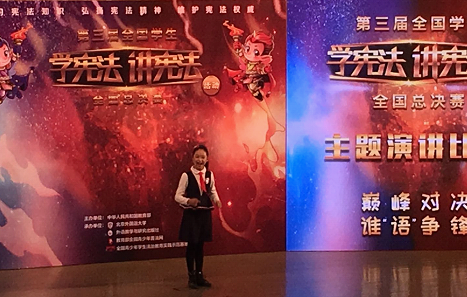 李佳霖同學憑著過人的膽識,運用鮮活靈動的語言,把自己是怎樣學憲法用憲法的經過闡述得生動活潑,以優異的成績進入全國16強,取得參加總決賽的資格。