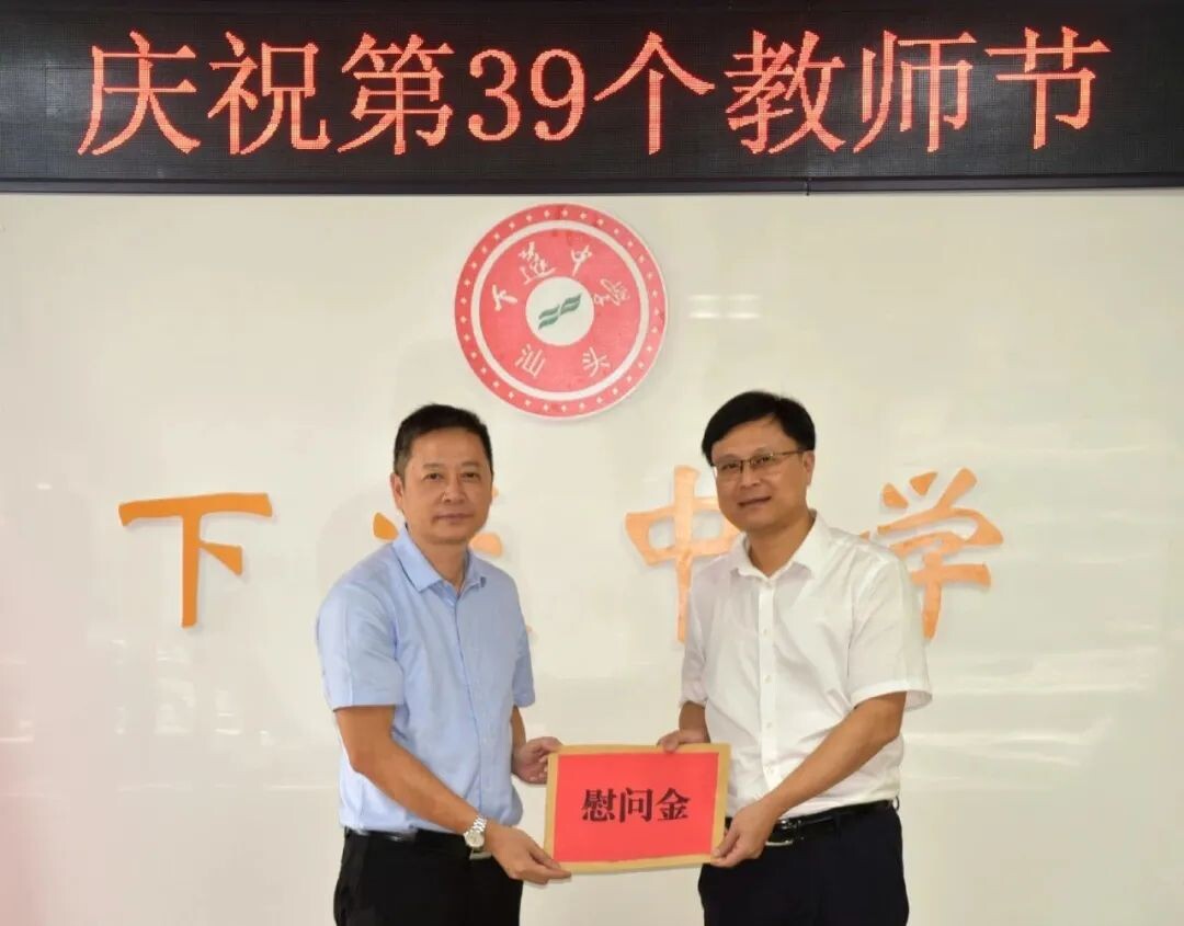 在第39個(gè)教師節(jié)來(lái)臨之際,9月8日上午,市人大常委會(huì)林曼副主任帶隊(duì)到下蓬中學(xué)開(kāi)展教師節(jié)走訪慰問(wèn)活動(dòng),代表市委、市人大常委會(huì)、市政府,向?qū)W校全體老師致以節(jié)日的問(wèn)候和崇高的敬意。市人大常委會(huì)副秘書(shū)長(zhǎng)王貴元,市委組織部副部長(zhǎng)、老干部局局長(zhǎng)盧惠群,市民政局長(zhǎng)李珩、龍湖區(qū)人大常委會(huì)主任謝宋彪、市教師發(fā)展中心主任林惜平、龍湖區(qū)教育局局長(zhǎng)王玲以及市、區(qū)相關(guān)部門(mén)同志陪同走訪。