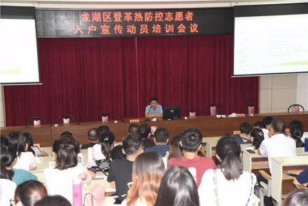 8月22日上午,龍湖區登革熱防控志愿者入戶宣傳動員培訓會在林百欣科技中專舉行。會上宣布,即日起至8月28日,區委從區教育系統9所學校抽調200名黨員教師、入黨積極分子和志愿者到新津街道片區進村入戶宣傳登革熱防控工作,發揮先鋒模范作用,全力打好打贏登革熱防控攻堅戰。