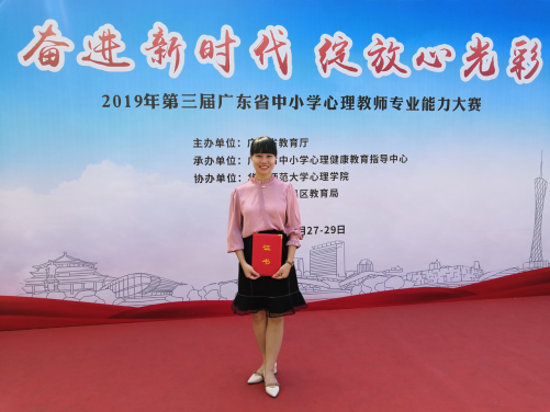 經(jīng)市初賽推薦,龍湖區(qū)廣東第二師范學(xué)院龍湖附屬中學(xué)的沈素莉老師代表汕頭市初中心理教師參加本次決賽,充分展現(xiàn)了龍湖區(qū)中小學(xué)心理教師的良好專業(yè)素養(yǎng),榮獲本次大賽初中組綜合二等獎(jiǎng),為龍湖區(qū)乃至汕頭市爭(zhēng)了光。