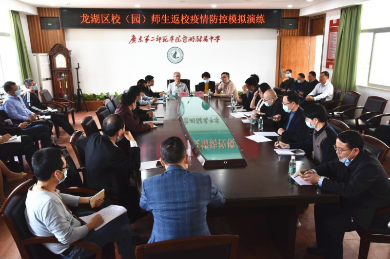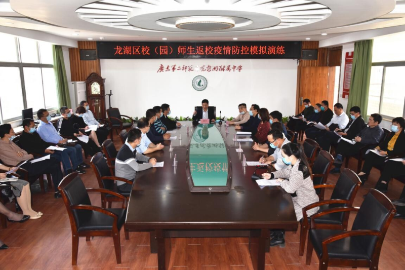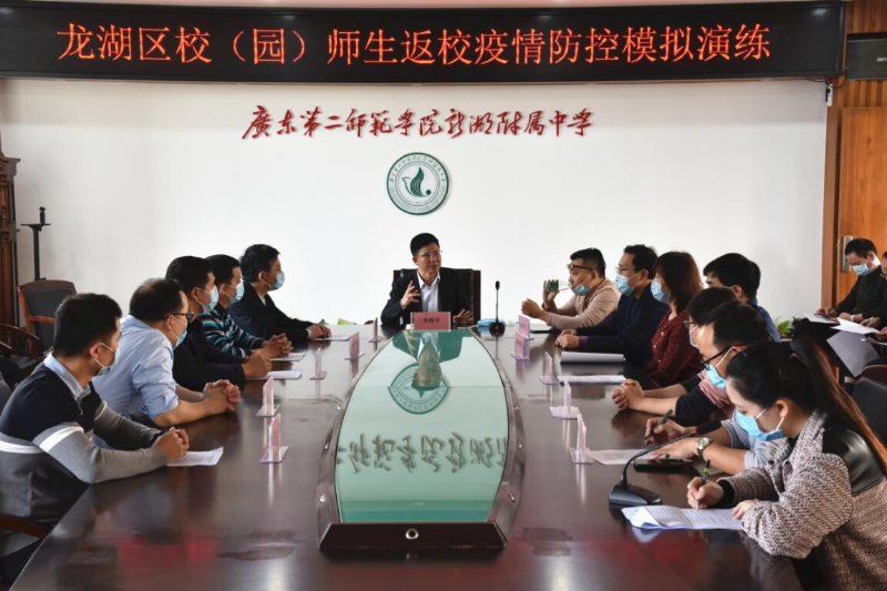 按照區教育系統防控新冠肺炎疫情指揮部的統一部署,4月16日上午,區教育局會同區疾控中心,在廣二師龍湖附中舉行校(園)師生返校疫情防控桌面模擬演練。涉及初三、高三返校的23所公民辦學校校長、各教育集團總校(園)長到場觀摩。