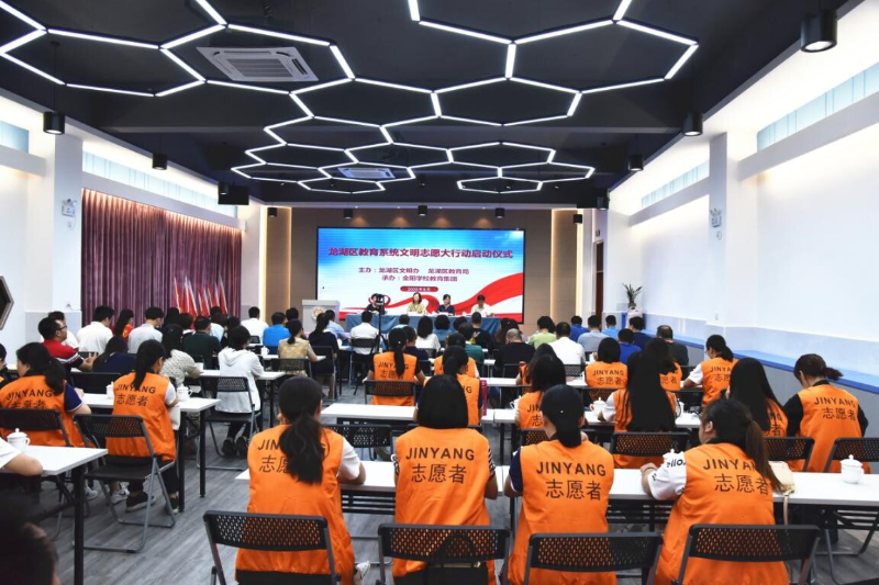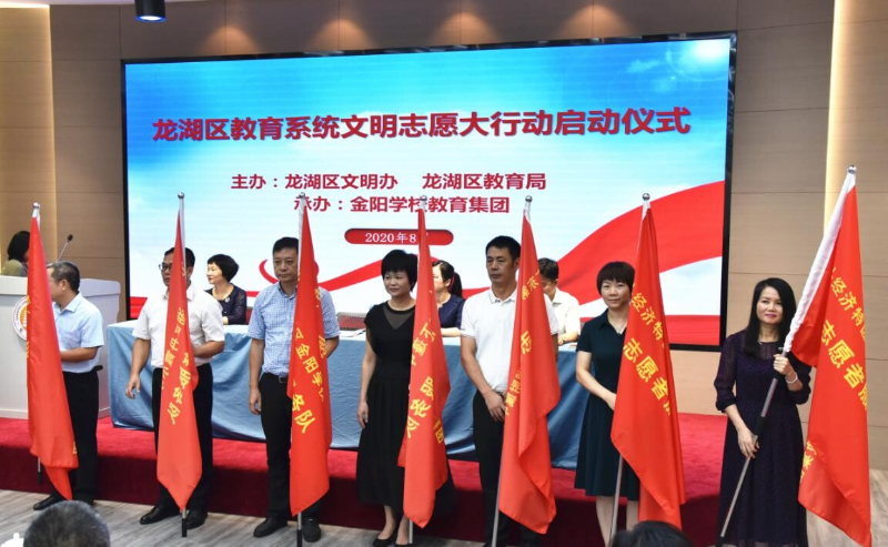 8月17日上午,由龍湖區文明辦、區教育局主辦,金陽學校教育集團協辦的龍湖區教育系統文明志愿服務大行動啟動儀式在龍泰小學舉行。區委常委、宣傳部部長鄭曉潔,區委宣傳部副部長芮玩燕,各街道創文工作分管領導,區教育局班子成員,區教師發展中心主任,局創文辦,外砂、新溪教育指導組負責人,各教育集團總校(園)長、各校配合街道文明志愿大行動聯絡人和志愿者代表共百余人參加了啟動儀式。