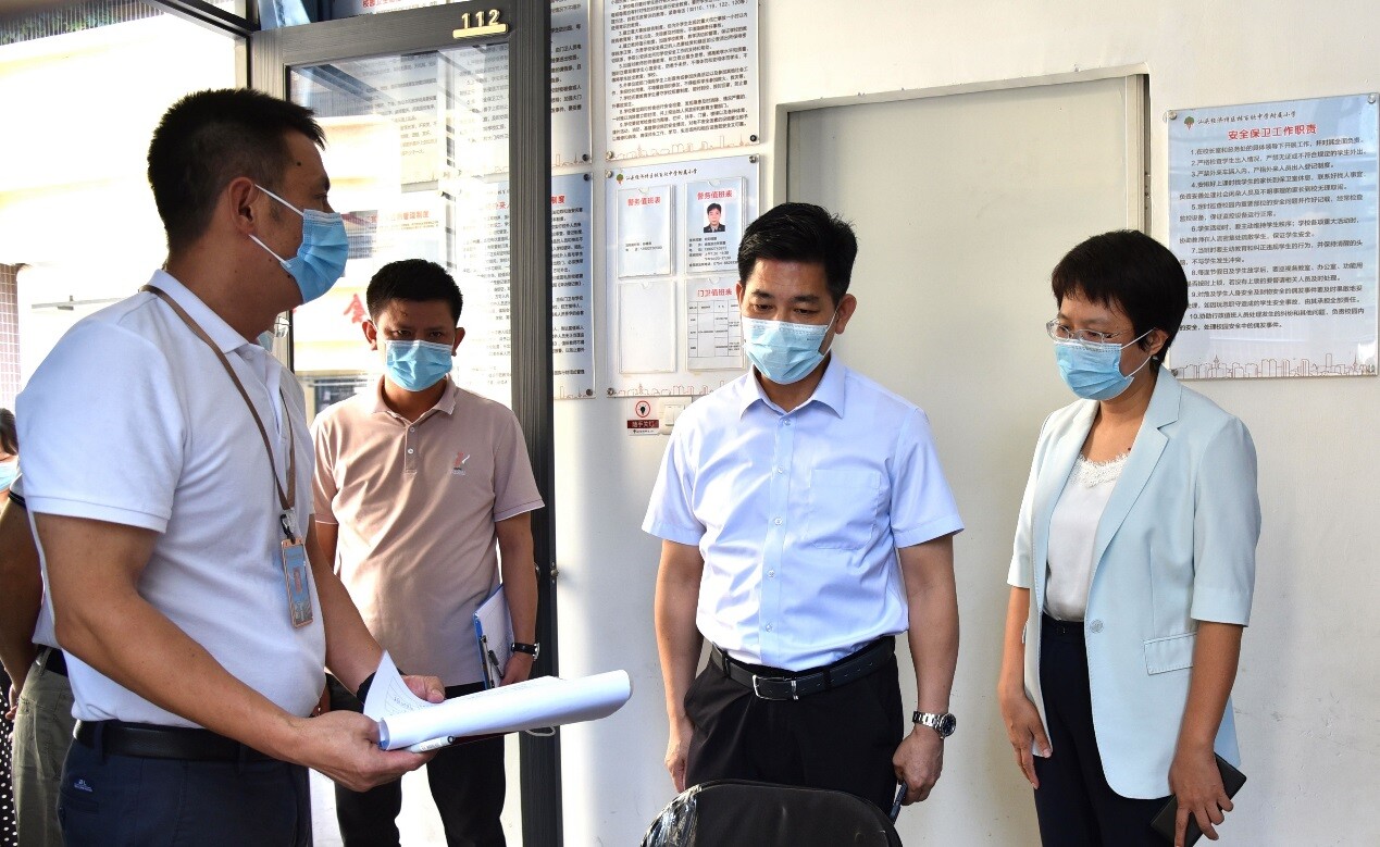 國慶假期將至,近日,區委常委、區黨政辦主任陳澤波帶隊到轄區各學校開展校園安全和疫情防控工作檢查。區教育局主要負責同志參加檢查活動。