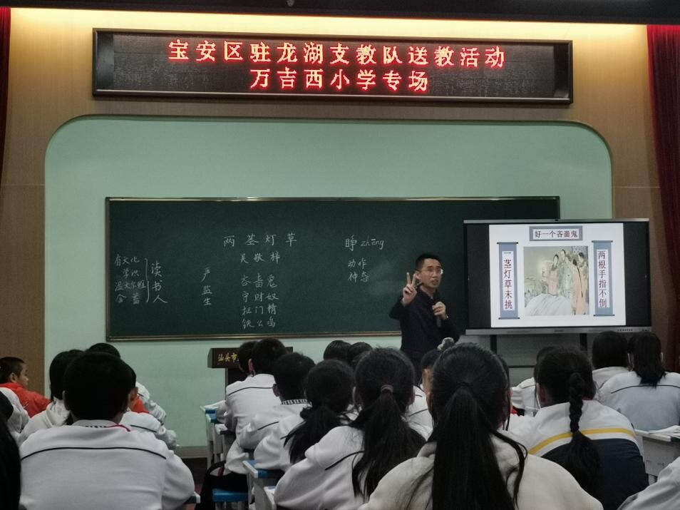 在穩步推進常規工作的基礎上,支教隊積極探索特色工作模式,以“發現行動”作為起點,運用田野調研、參與式觀察等方法,發現寶安、龍湖雙方的即時需求和優勢資源,精準尋找幫扶切口;以“訂單式聯動項目”推動問題解決,從課內教學鏈接社會資源,從提升教師專業能力到展示學生素養,及時制定系列教研活動。近期,支教隊開展外砂片區系列送教活動,推進片區聯合教研工作,助力教師專業成長。