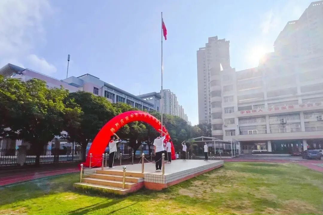 10月1日,廣東第二師范學院龍湖附屬中學舉行了莊嚴的升國旗儀式。參加儀式的全體人員面向國旗,肅然而立,齊唱國歌,表達對五星紅旗的崇高敬意和對祖國母親的深情祝福。(彭揚)