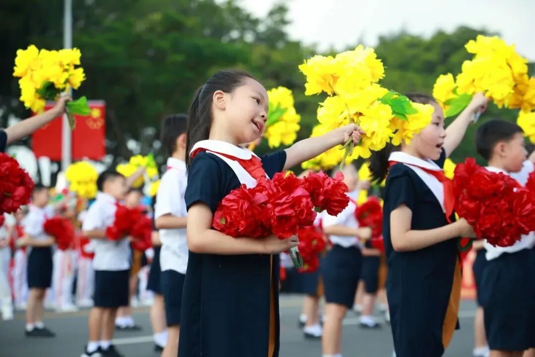 10月1日上午,汕頭市國慶巡游拉開序幕,50名金陽小學儀仗隊隊員奏響《歡迎曲》!在《我是未來》的樂聲中,100名金陽娃組成的花束隊閃亮登場。他們揚著燦爛的笑臉,舞動最靚新時代!那抹涌動著的中國紅,恰如金陽娃們一片赤誠的愛國心!(王梓燁)