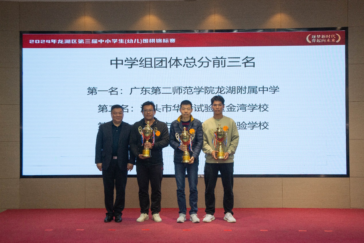 12月14日至15日,由龍湖區教育局、汕頭圍棋協會主辦,潮汕棋院、龍湖區四藝教育培訓中心有限公司承辦,廣東泰恩康醫藥股份有限公司協辦的2024年龍湖區第三屆中小學生(幼兒)圍棋錦標賽在龍湖區龍泰小學舉行。市教育局、區教育局有關領導及市圍棋協會有關同志參加閉幕式并為獲獎選手頒獎。
