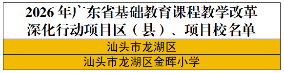 龍湖區(qū)及金暉小學(xué)入選2026年廣東省基礎(chǔ)教育課程教學(xué)改革深化行動(dòng)項(xiàng)目