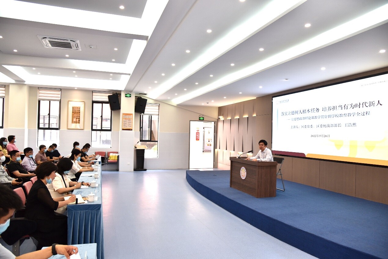 圍繞“如何讓思想政治理論課教學貫穿到學校教育教學全過程”這個問題,王浩然同志指出,一?要推動中小學校思政課程全覆蓋,打造龍湖教育思政品牌;二要做好“千師訪萬家”工作,??打造行走的思政課堂;三要發揮課堂主渠道作用,??打造一門精品思政課程;四要推動思政課改革創新,讓思政教學更接地氣;???五要營造文化育人的氛圍,??讓思政教育潤物無聲;六要開展主題教育實踐活動,讓思政教育知行合一。