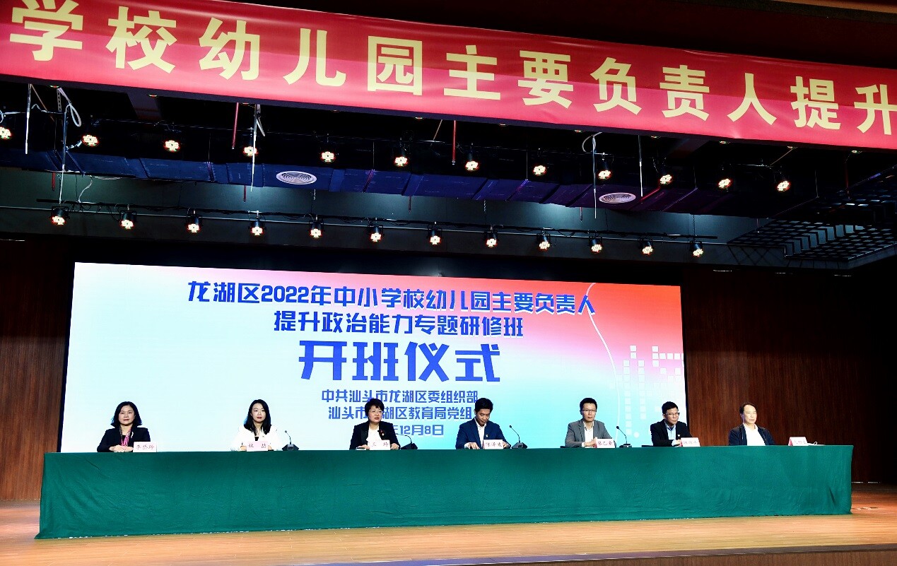 為深入學(xué)習(xí)貫徹習(xí)近平總書(shū)記關(guān)于教育的重要論述,加強(qiáng)黨對(duì)教育工作的全面領(lǐng)導(dǎo),扎實(shí)推動(dòng)黨的二十大精神落地落實(shí),推進(jìn)中小學(xué)、幼兒園黨的建設(shè)和思想政治工作,龍湖區(qū)委組織部、龍湖區(qū)教育局聯(lián)合舉辦全區(qū)2022年中小學(xué)(幼兒園)主要負(fù)責(zé)人提升政治能力專(zhuān)題研修班。8日上午,研修班在龍湖區(qū)教師發(fā)展中心學(xué)術(shù)報(bào)告廳舉行開(kāi)班儀式。區(qū)委常委、區(qū)黨政辦主任陳澤波同志,區(qū)委組織部有關(guān)負(fù)責(zé)同志,區(qū)教育局班子成員和有關(guān)股室負(fù)責(zé)同志以及區(qū)教師發(fā)展中心全體同志,全區(qū)中小學(xué)校校長(zhǎng)、公辦幼兒園園長(zhǎng)參加開(kāi)班儀式。