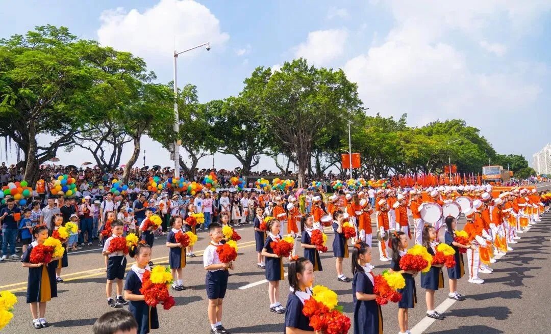 10月1日上午,汕頭市國慶巡游拉開序幕,50名金陽小學儀仗隊隊員奏響《歡迎曲》!在《我是未來》的樂聲中,100名金陽娃組成的花束隊閃亮登場。他們揚著燦爛的笑臉,舞動最靚新時代!那抹涌動著的中國紅,恰如金陽娃們一片赤誠的愛國心!(王梓燁)