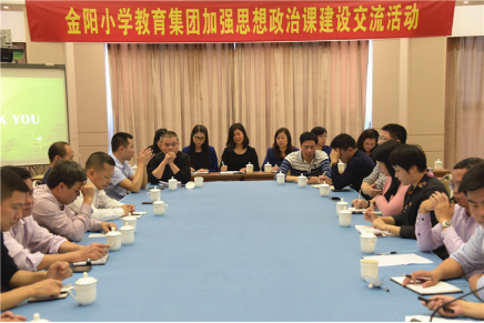 為貫徹落實習近平總書記在學校思想政治理論課教師座談會上的重要講話精神,加強學校的思想政治課建設工作,5月10日下午,金陽小學教育集團20余所成員學校近50名校長及政教主任齊聚一堂,在金陽小學三樓藝術廳舉行“立德樹人重思政 ?交流指導明方向”主題交流活動,共同就如何更好地在教研、教學中開展思想政治理論課程建設進行熱烈探討。區委常委、區政府常務副區長楊惠文,區教育局副局長林輝平參加了交流活動,活動由金陽小學教育集團總校長紀彥芳主持。