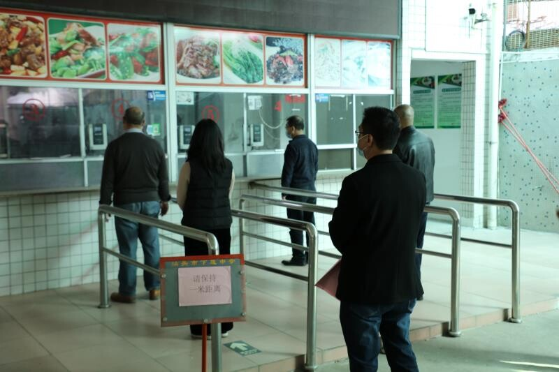 上午7時(shí)40分,演練正式開(kāi)始。學(xué)校門(mén)口,老師、“學(xué)生”間隔有序排隊(duì),等候?qū)W校工作人員檢測(cè)體溫后進(jìn)入;教室門(mén)口,“班主任”再次為同學(xué)們檢測(cè)體溫;食堂里,同學(xué)們分批次進(jìn)入食堂列隊(duì)領(lǐng)飯,人與人之間相距1米以上進(jìn)餐……學(xué)生在校園里學(xué)習(xí)生活的每一個(gè)可能出現(xiàn)意外狀況的情景,各校(園)紛紛進(jìn)行了演練。