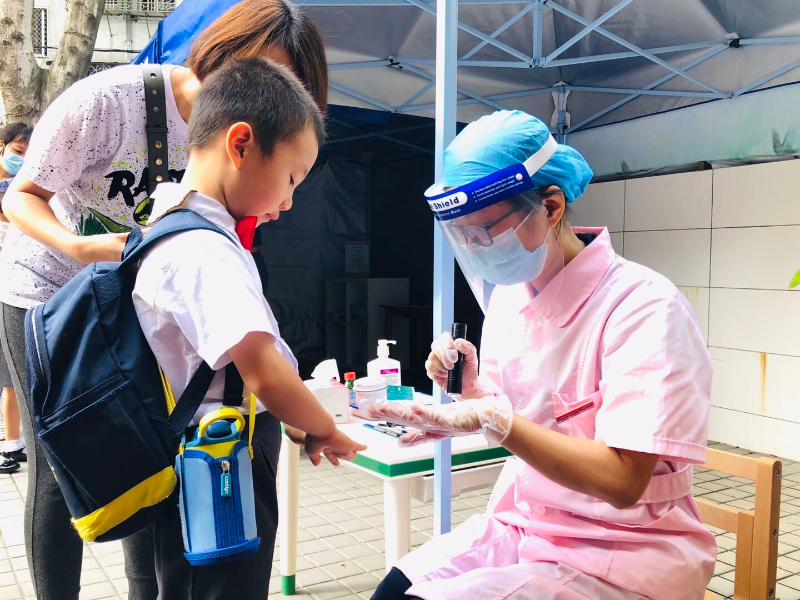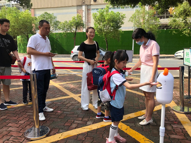 上午8:30開(kāi)始,孩子們分批分時(shí)段在家長(zhǎng)的陪同下來(lái)到幼兒園大門(mén)口。各園門(mén)口秩序井然,幼兒園教職員工和公安交警部門(mén)等工作人員全部到位,各司其職。為了保證每一個(gè)幼兒的健康,各園均實(shí)行錯(cuò)時(shí)錯(cuò)峰入園離園,幼兒園封閉管理,家長(zhǎng)不進(jìn)入園區(qū)。幼兒由家長(zhǎng)帶領(lǐng)在幼兒園門(mén)口劃線處排隊(duì),依次進(jìn)入園內(nèi),進(jìn)行鞋底消毒、測(cè)量體溫、檢查口腔、洗手消毒等工作。