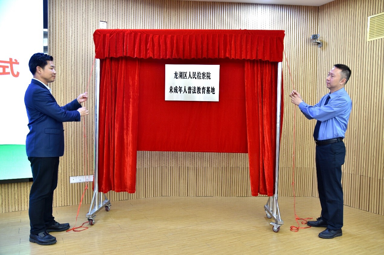 隨后,龍湖區委常委、區黨政辦主任陳澤波同志和龍湖區人民檢察院黨組書記、檢察長張介志共同為基地揭牌。據悉,龍湖區未成年人普法教育基地修繕后,擁有100個座位,配套有多媒體教學、直播和錄播等先進遠程教育設施,科技性強、體驗性好、功能性齊,能積極推動青少年法治教育工作的開展,對促進青少年健康成長具有十分重要的意義。