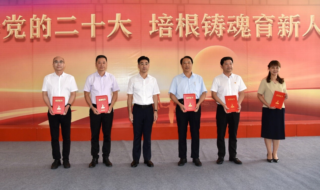 會前,區委領導一行到教師發展中心各研訓功能室巡視、看望慰問一線教師代表,觀看龍湖教育宣傳片及師生優秀文藝展演節目,聽取教育工作報告,并為從教30年、35年和40年的教師代表及名校長、名班主任、名教師頒發榮譽證書和獎章。