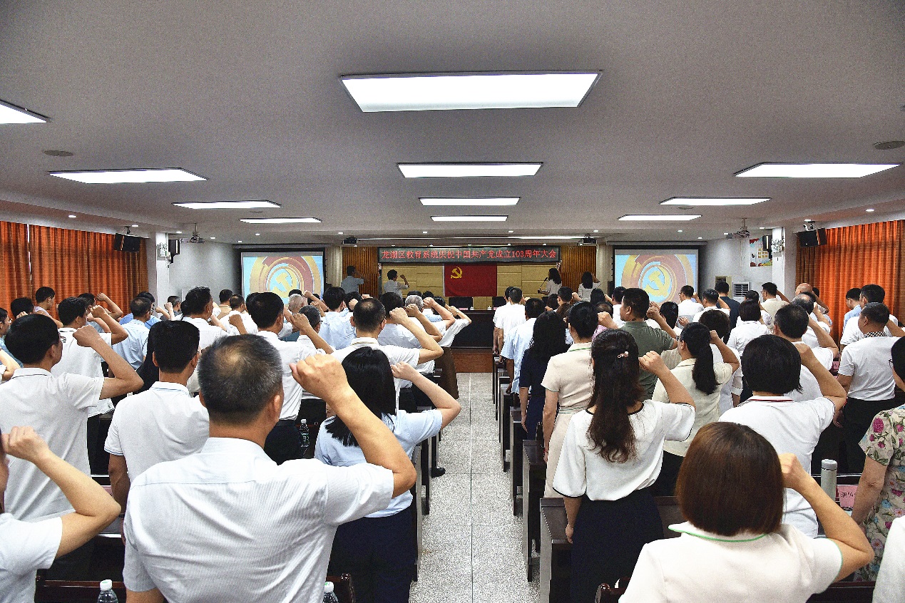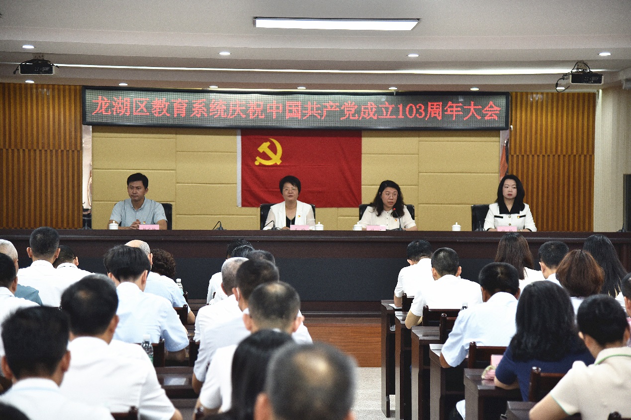 為慶祝中國共產黨成立103周年,弘揚偉大建黨精神,進一步激勵教育系統基層黨組織和廣大黨員堅定信念,勇于擔當,創新實干,6月26日上午,區委教育工委召開龍湖區教育系統慶祝中國共產黨成立103周年大會。區教育局領導班子成員、局各股室負責人,區教師發展中心有關負責人,各中小學、幼兒園黨組織書記,各中小學、公辦幼兒園校長(園長)參加會議。