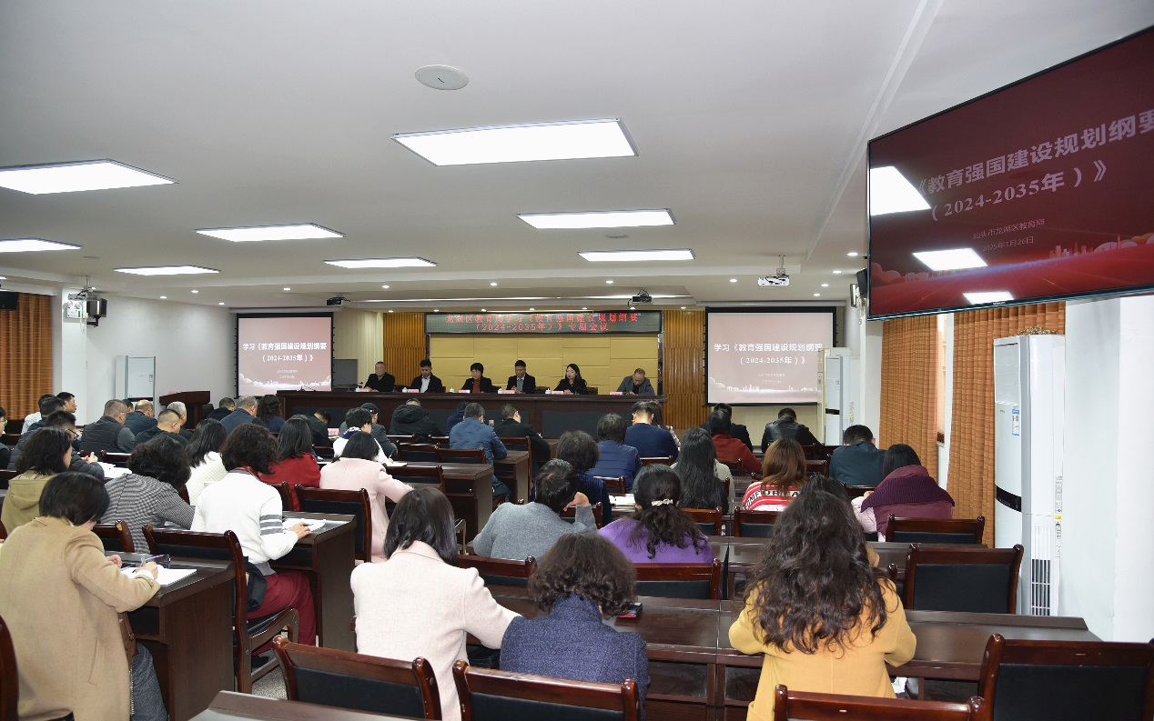 為深入貫徹落實(shí)黨中央關(guān)于教育強(qiáng)國建設(shè)的戰(zhàn)略部署,1月26日上午,區(qū)教育局舉辦《教育強(qiáng)國建設(shè)規(guī)劃綱要(2024-2035年)》(以下簡稱《綱要》)專題學(xué)習(xí)會,區(qū)教育局機(jī)關(guān)和區(qū)教師發(fā)展中心全體干部職工參加會議。