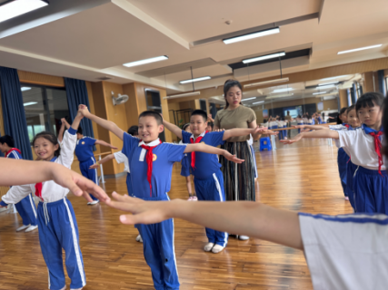 在劉主任的指導(dǎo)下,我承擔(dān)二年級(jí)校本課程·舞蹈的教學(xué)工作。課程以集體舞為主要形式,重點(diǎn)培養(yǎng)學(xué)生的合作意識(shí)與團(tuán)隊(duì)精神,并為藝術(shù)節(jié)的集體表演做準(zhǔn)備。藝術(shù)節(jié)上,看著孩子們從最初的拘謹(jǐn)?shù)阶罱K的自信舞動(dòng),我深刻體會(huì)到美育對(duì)學(xué)生綜合素質(zhì)的培養(yǎng)價(jià)值。