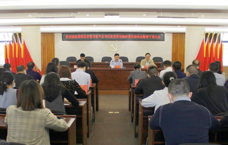 發(fā)布時間:3月20日,區(qū)紀(jì)委監(jiān)委召開干部大會,傳達(dá)學(xué)習(xí)習(xí)近平總書記在全國兩會上的重要講話暨全國兩會精神,以及省、市、市紀(jì)委監(jiān)委和區(qū)干部大會精神,研究部署全區(qū)紀(jì)檢監(jiān)察系統(tǒng)學(xué)習(xí)貫徹工作。區(qū)委常委、區(qū)紀(jì)委書記、區(qū)監(jiān)委主任黃斌主持會議并講話。