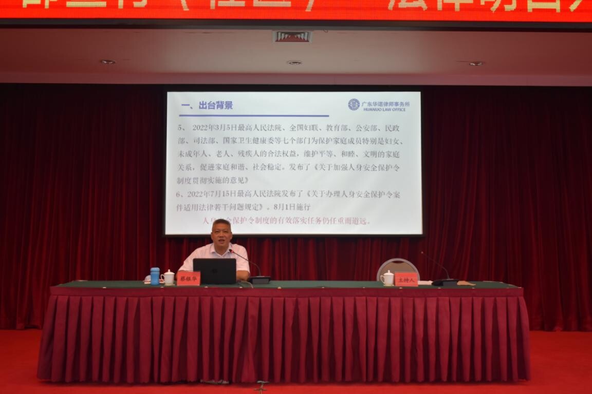此次培訓(xùn)邀請廣東華諾律師事務(wù)所主任蔡銀華律師作《反家暴的法寶——人身安全保護(hù)令》以及《民法典》專題業(yè)務(wù)培訓(xùn)。蔡律師用生動形象、幽默風(fēng)趣的語言,深入淺出的典型案例分析,為大家詳細(xì)講解《人身安全保護(hù)令》的內(nèi)容,以及反家庭暴力、民法典的相關(guān)法律知識以及預(yù)防與調(diào)解應(yīng)對技巧。進(jìn)一步提高了各村(社區(qū))干部和“法律明白人”的法治素養(yǎng)、實(shí)踐能力和矛盾糾紛調(diào)處能力,真正讓“法律明白人”培訓(xùn)落到實(shí)處。