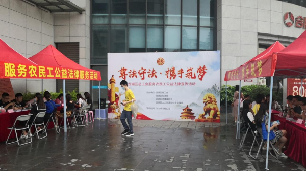 為切實維護農民工合法權益,促進農民工返崗就業,全力保障企業復工復產,2020年5月12日上午,龍湖區司法局、龍湖區法律援助處聯合區總工會、區人社局在新一城合勝百貨大門口開展了“尊法守法?攜手筑夢”服務農民工公益法律服務行動。