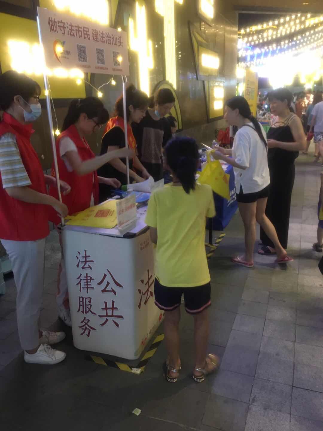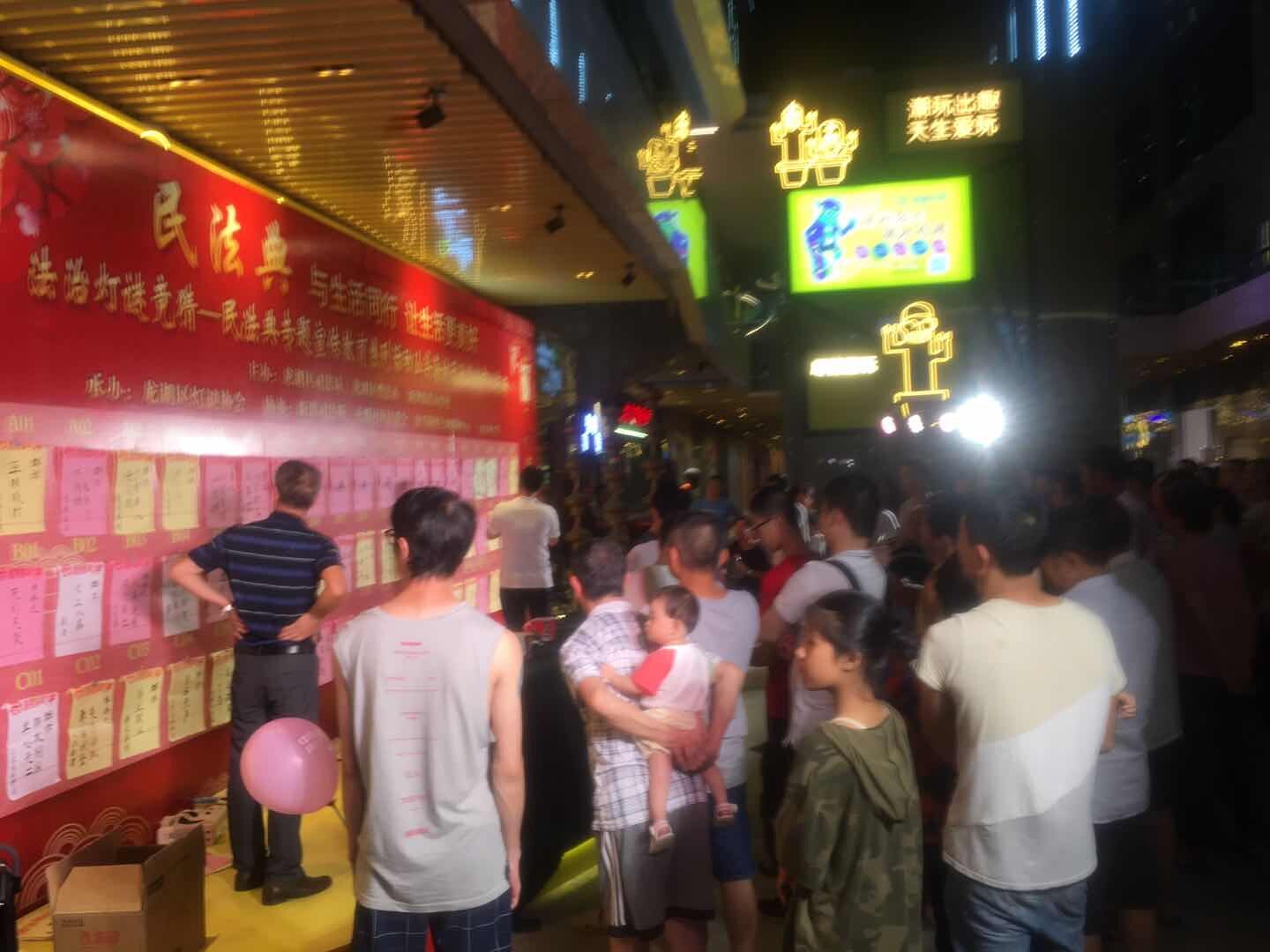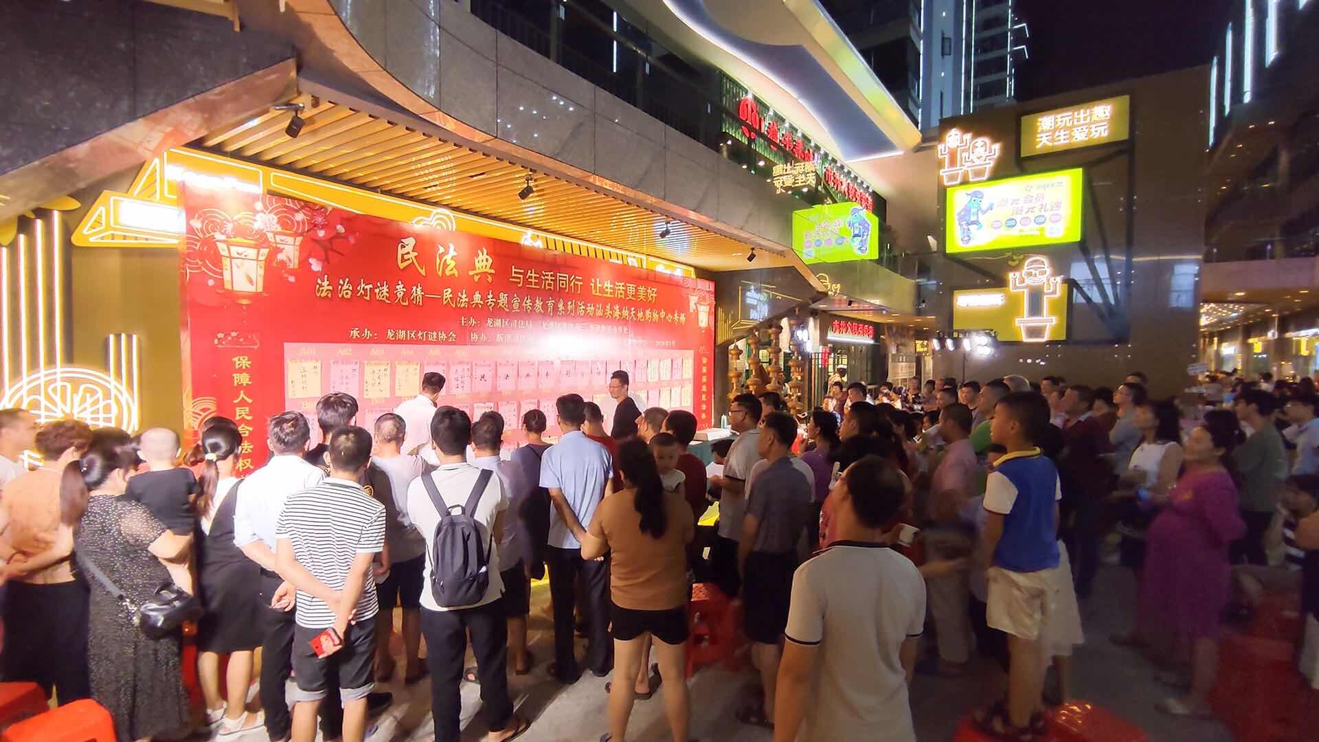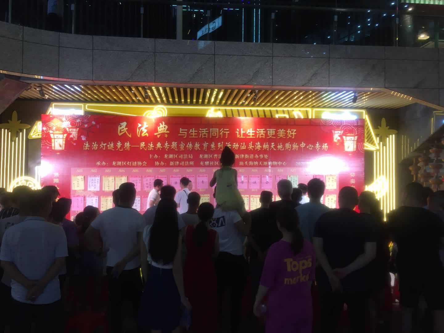 為豐富企業員工、社區居民、外來務工人員的夜文化生活,進一步向廣大人民群眾宣傳民法典,切實讓民法典走到群眾身邊,走進群眾心里,7月25日晚,龍湖區司法局、區普法辦聯合新律街道、龍湖區燈謎協會在汕頭海納天地購物中心地攤廣場舉行了以“民法典,與生活同行,讓生活更美好”為主題的法治燈謎競猜暨民法典專題宣傳教育活動。