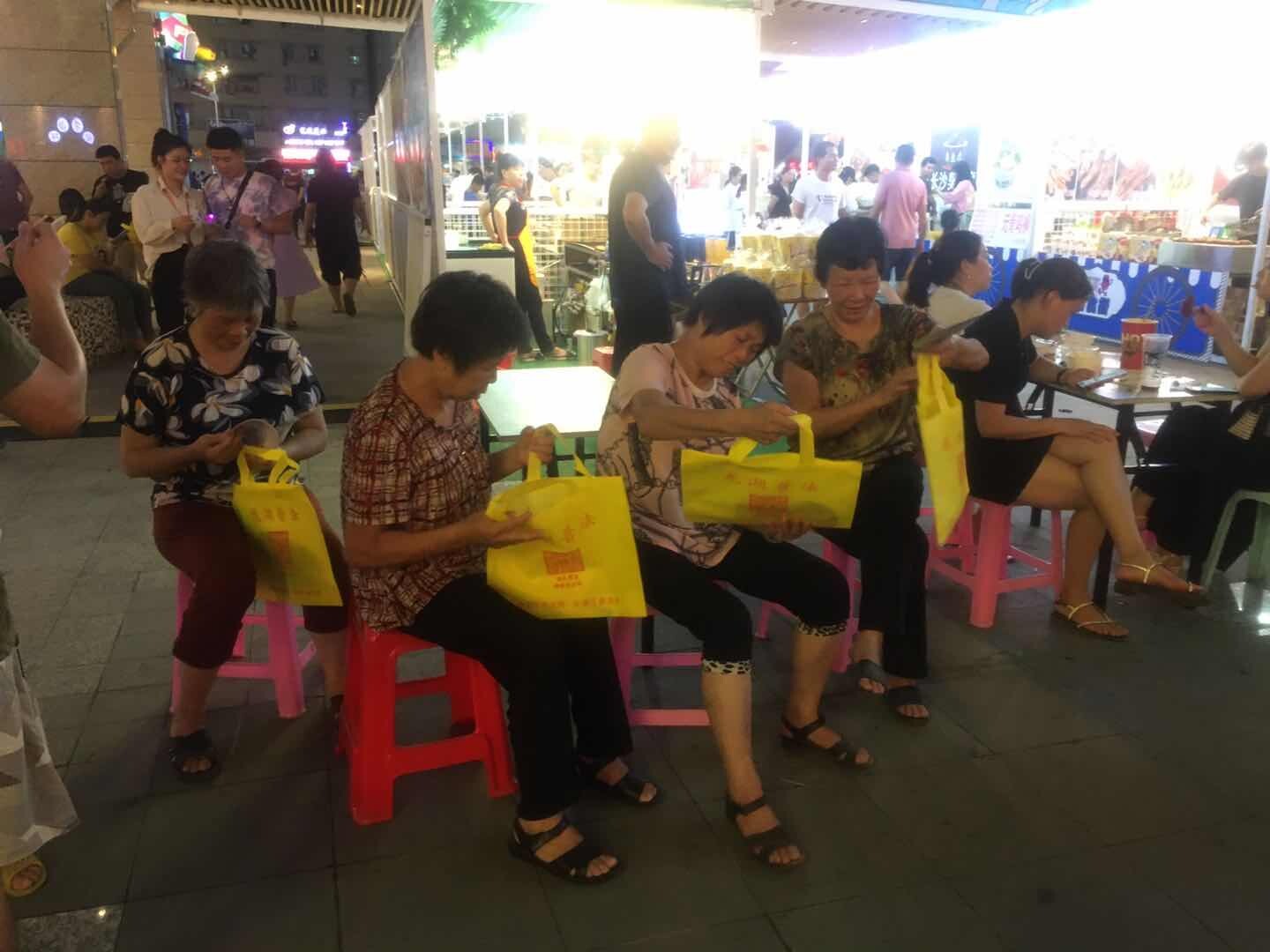 汕頭海納天地購物中心緊挨著新津街道陳厝合片區,是外來務工人員傍晚集中活動場地。廣場人潮涌動,人聲鼎沸,熱鬧非凡。謎會現場猜眾踴躍。皮鼓頻敲,報猜聲不斷,解謎聲此起彼落。企業員工、社區居民、外來務工人員、燈謎愛好者歡聚在一起,大家智猜燈謎、喜拿獎品,不亦樂乎。