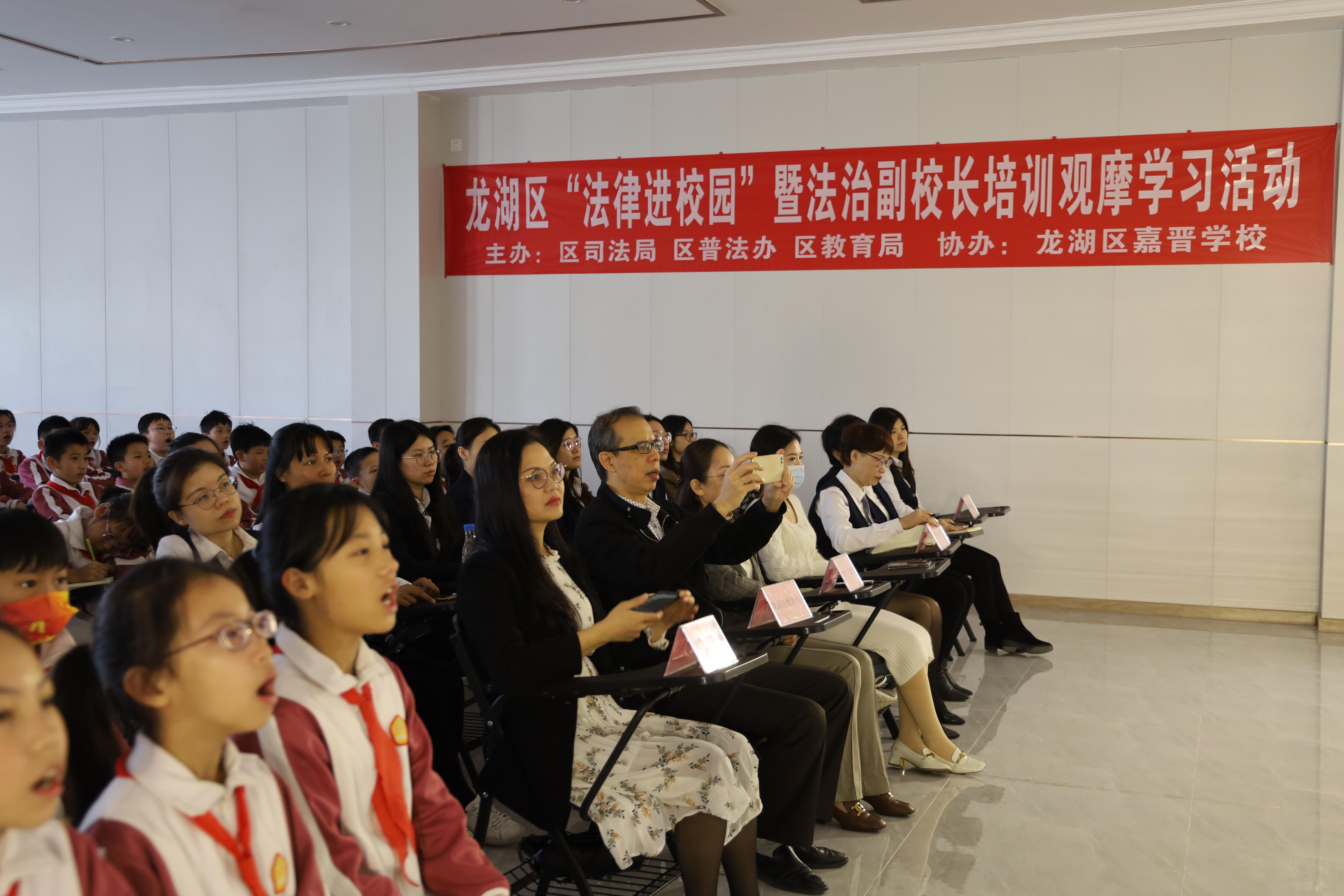 為貫徹落實習近平法治思想,充分發揮法治副校長在青少年法治宣傳教育工作中的重要作用,以及貫徹落實汕頭市普法辦有關通知文件,以憲法宣傳教育為統領,結合“憲法教育大課堂”活動要求,2021年12月1日上午,區普法辦、區司法局、區教育局在龍湖區嘉晉學校開展“法律進校園”暨法治副校長培訓觀摩學習活動。
