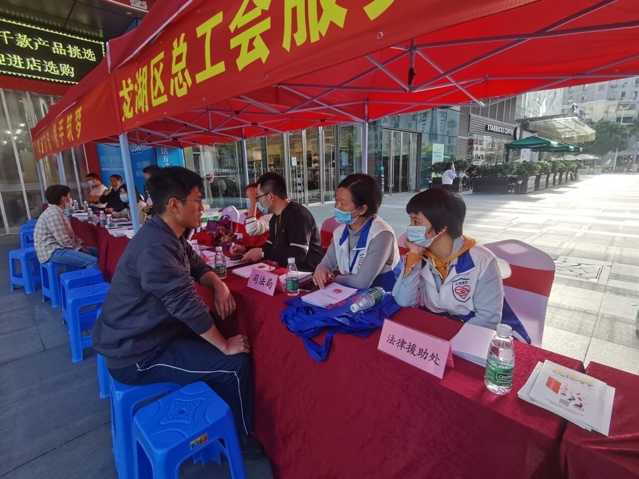 為貫徹落實全國總工會“尊法守法?攜手筑夢”服務農民工公益法律服務行動要求,結合能力作風提升年活動要求,深入推進“我為群眾辦實事”活動,引導農民工尊法、學法、守法、用法,進一步做好新形勢下農民工維權服務工作,切實維護農民工的合法權益,促進勞動關系和諧和社會穩定,2022年3月31日下午,區司法局與區總工會、區人社局在蘇寧廣場聯合開展“尊法守法?攜手筑夢”服務農民工公益法律宣傳活動。