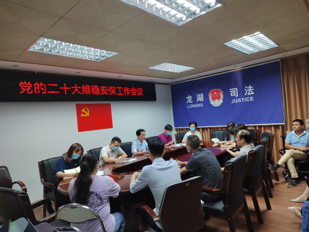 會議學習傳達了市、區做好黨的二十大維穩安保工作部署會的會議精神,要求全區司法行政系統認真落實疫情要防住、經濟要穩住、發展要安全的重要要求,為黨的二十大勝利召開提供有力的法律服務保障。