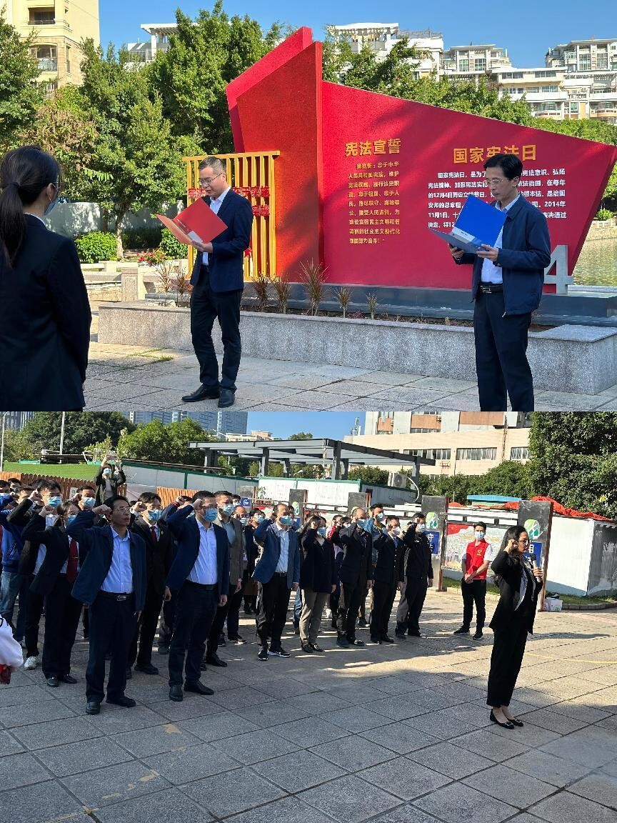 為學習貫徹黨的二十大精神,學習貫徹習近平法治思想,不斷增強憲法意識,大力弘揚憲法精神,堅決維護憲法權威,增強全民憲法意識和法治觀念,2022年12月8日,由龍湖區委依法治區辦、區委宣傳部、區委統戰部、區委政法委、區普法辦、區司法局、區人社區局主辦,區檢察院、區法院、區民政局等單位協辦,在汕頭市法治文化主題公園(星湖公園)開展“龍湖區2022年憲法宣誓儀式暨憲法宣傳周主題宣傳活動”。